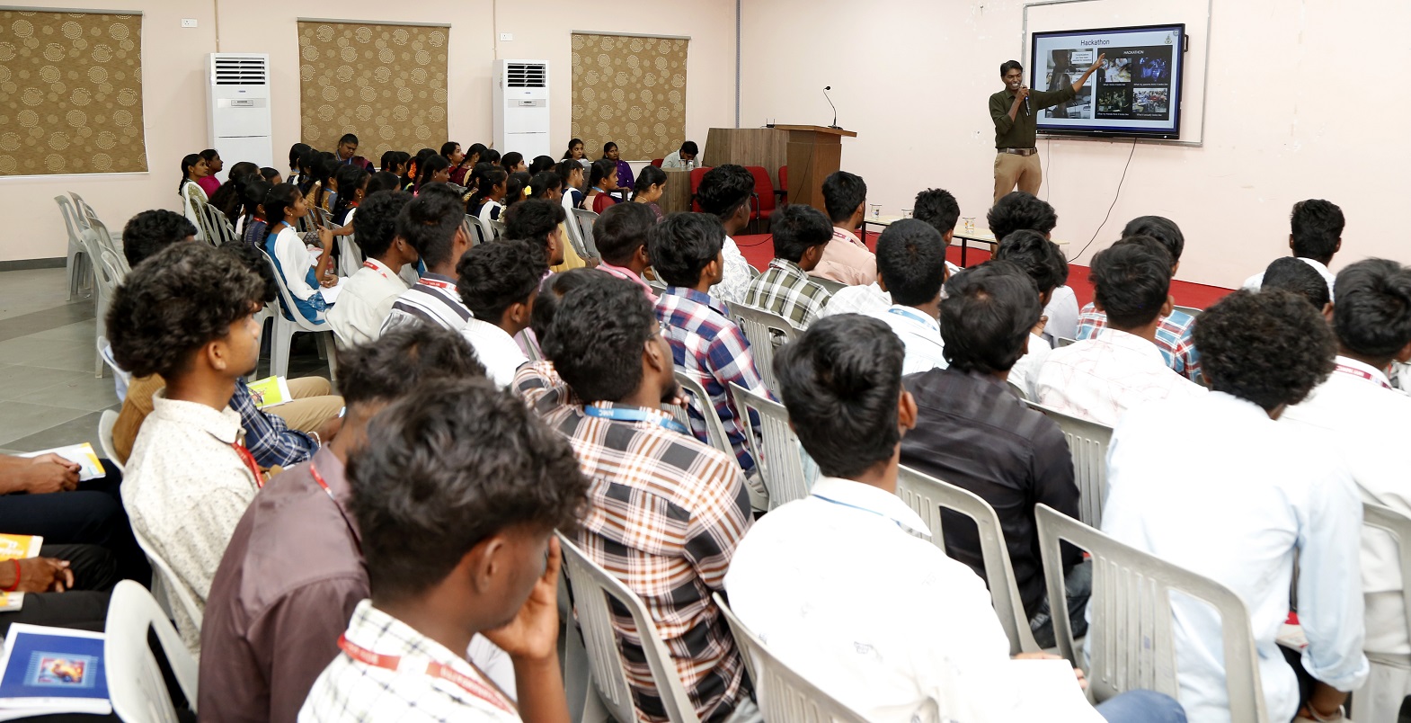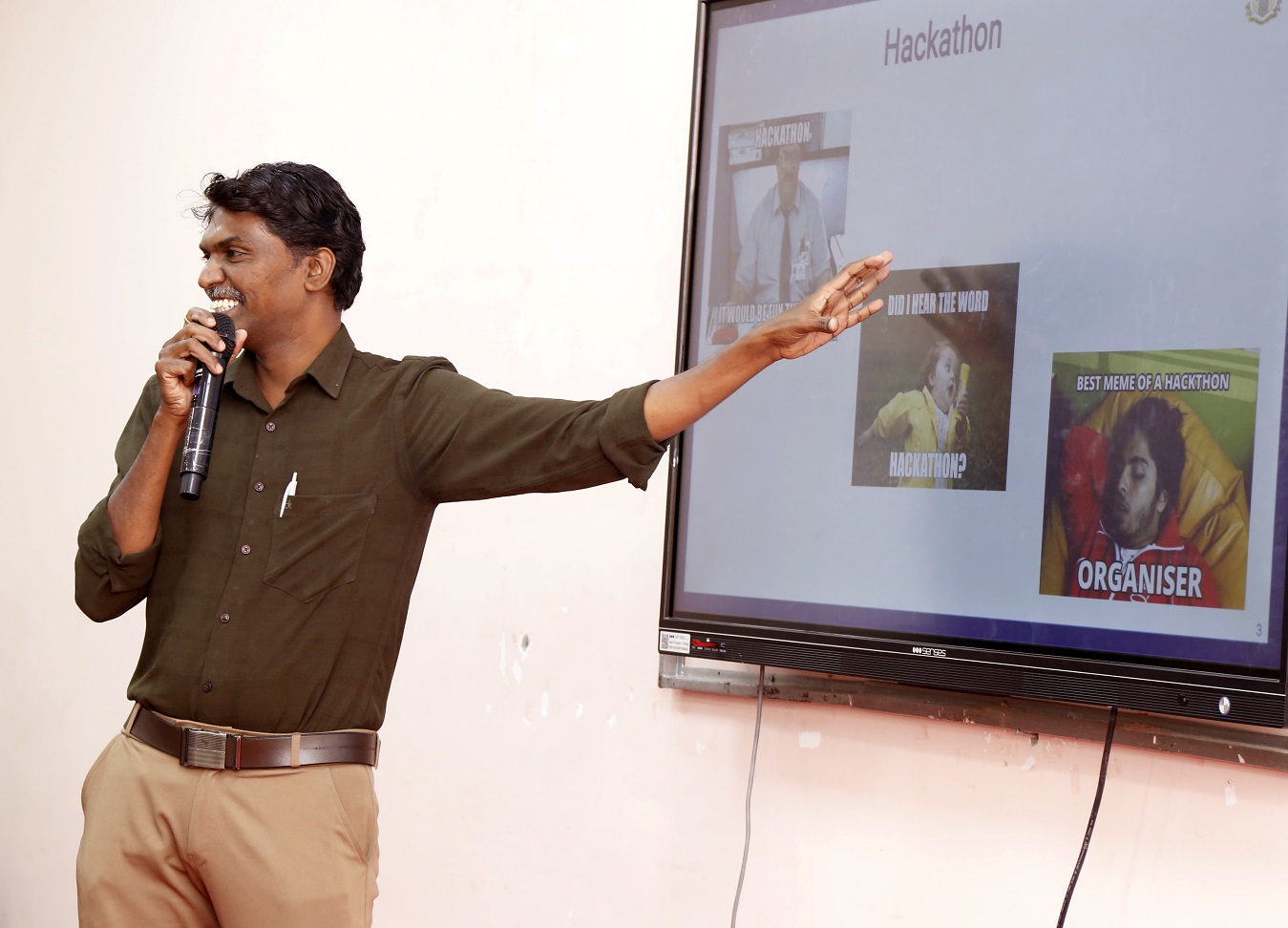 Dr. K.T. Tamilmani, Vice Principal, in his address, remarked that the word “hack” does not merely mean coding, but refers to smart techniques, innovative tricks, and strategic thinking required to solve real-world problems efficiently. He explained that learning to “hack” is about approaching challenges with creativity, clarity, and confidence. He also highlighted insights from the recent AI Summit, where experts discussed the rapid advancements in Artificial Intelligence, emerging technologies, and the growing demand for skilled professionals who can adapt quickly to dynamic industry trends. He emphasized that students must stay updated with such developments and cultivate both technical expertise and innovative thinking to succeed in competitive platforms like hackathons.