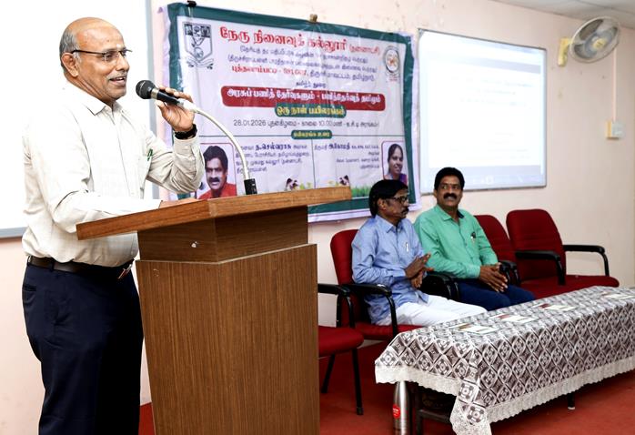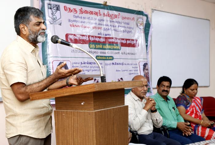 நேரு நினைவுக் கல்லூரியில் தமிழ்த்துறை சார்பில், “அரசுப் பணித் தேர்வுகளும் பணித்தேர்வுத் தமிழும்” என்ற தலைப்பில் ஒரு நாள் பயிலரங்கம் ஐ.சி.டி அரங்கம் - 1ல் 28.01.2026 புதன்கிழமை காலை 10.00 மணிக்குத் தொடங்கி நடைபெற்றது.