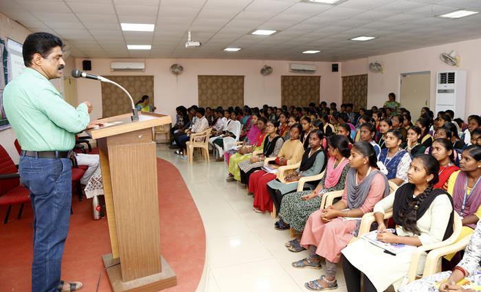 கல்லூரி முதல்வர் முனைவர் அ.வெங்கடேசன் அவர்கள் தலைமையுரையாற்றினார். கல்லூரிச் செயலர் பொன்.இரவிச்சந்திரன் அவர்கள் தொடக்கவுரை ஆற்றினார் அவர்தம் உரையில், அயல் மாநிலங்களிருந்து தமிழ் நாட்டில் வந்து பல்லாயிரக்கணக்கில் பணியாற்றுவதைப் பார்க்கிறீர்கள் இன்றைக்கு தமிழ்நாட்டில் பயில்பவர் வேலைவாய்ப்பு பெறவேண்டும் என்ற நோக்கில் அரசுப்பணித் தேர்வுகள் நடத்தப்படுகின்றன. அவற்றை உணர்ந்து மாணவர்கள் பணித்தேர்வுகளை எழுத முயலவேண்டும். உங்களுக்கு இங்குக் கிடைக்கிற வாய்ப்புகளைத் தவறாது பயன்படுத்திக்கொண்டு வெற்றிபெறவேண்டும் என்று கூறினார்.
