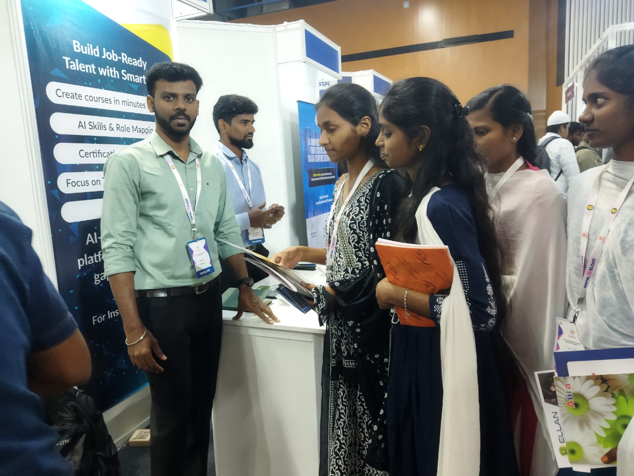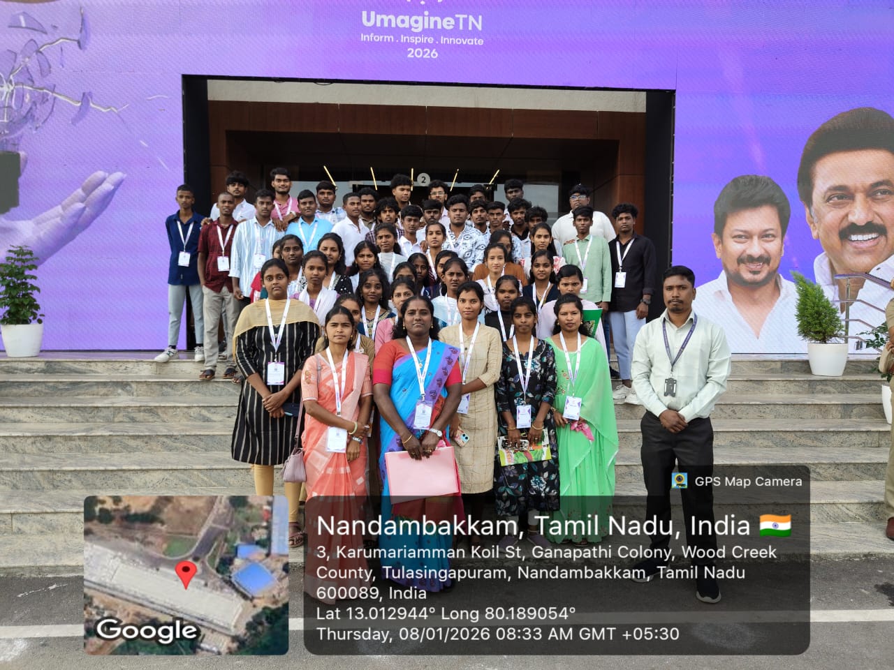 The visit commenced with departure from Puthyanampatti campus at 10:00 PM (07.01.2026) via AC bus, arriving at Chennai Trade Centre, Nandambakkam by 8:30 AM for Day 1 of Umagine TN 2026, Tamil Nadu's flagship tech summit. Participants attended the inauguration and Chief Minister M.K. Stalin's keynote on elevating IT talent through AI skilling and 20 lakh job creation, followed by speeches from IT Minister Dr. Palanivel Thiaga Rajan (PTR) on digital services, ethics, empathy, and AI infrastructure like Coimbatore's 3M sq.ft IT park. Key sessions included "Ahead of the Algorithm: Winning in a Rapidly Digital World" on AI strategies, Tech-Led Transformation panels covering FinTech, EduTech, HealthTech, Deep Tech, BioTech, agritech, Web 3.0, Space Tech, and Clean Energy, plus visionary discussions in Hall F. The Umagine DX campus programs reaching 59 colleges across 20 districts—mirroring themes like Frontier Technologies (AI/Blockchain/Quantum), Data Factories, Digital Infrastructure (DPI/AI public services), and MSME applications directly relevant to the AI/ML curriculum on Neural Networks and Data Science. From 1:00-3:00 PM, students explored 150+ exhibitor stalls and the 50,000 sq.ft experience zone, engaging with Startup Grand Challenge zonal finalists in semiconductors and edtech amid 4,000+ delegates and 100+ experts.