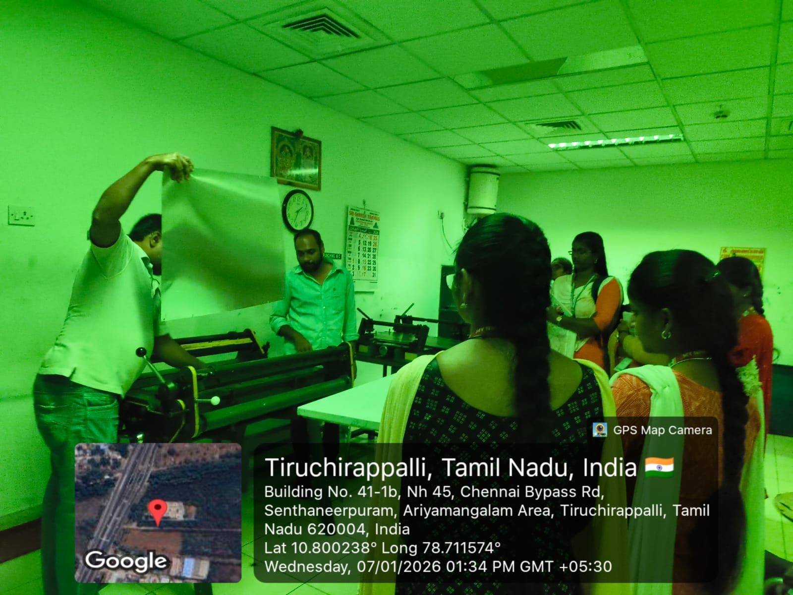 Mr. C. Kathiravan, AGM (Printing), and his technical team spoke to the students about the use of technology in printing and other production processes. Mr. S. Baskar, Junior Engineer (Printing), and Mr. R. Manoraj, Junior Engineer (Printing), demonstrated the modern machinery used in newspaper printing. They explained the coloring process, including the CMYK color model (Cyan, Magenta, Yellow, Black), and how light theory is applied in additive colors (RGB). They also described the scanning process, explaining the steps of Collection, Preparation, Scanning, and Sharing.