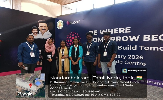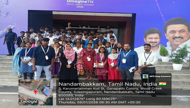 The visit started from NMC, Puthanampatti at 10:00 PM on 07.01.2026 by VIP Travels bus and reached the Trade Centre, Nandambakkam, Chennai at 7:45 AM on the first day of Umagine TN 2026 Technology Summit.