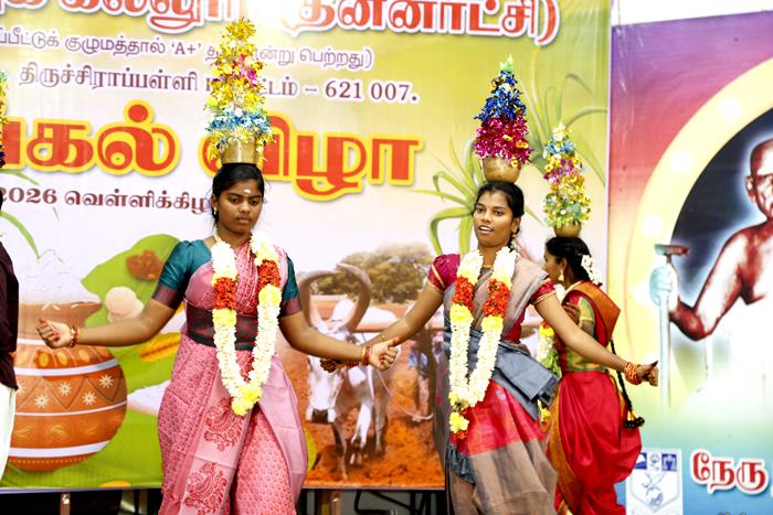 நேரு நினைவுக் கல்லூரி சுயநிதிப் பிரிவு சார்பில் 09.01.2026, வெள்ளிக்கிழமை அன்று பேராசிரியர்கள், மாணவர்கள் இணைந்து காலை 10 மணி அளவில் பொங்கல் வைத்தனர். பாரம்பரியத்தையும் கலாச்சாரத்தையும் போற்றும் வகையில் ஆவாரம் பூ, கூழைப்பூ, செங்கரும்பு ,மஞ்சள் கொத்து வைத்து சர்க்கரைப்பொங்கல் படையலிட்டுச் சூரிய வழிபாடு நடத்தி பொங்கல் விழா நடைபெற்றது.