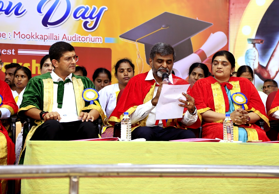 சிறப்பு விருந்தினராக சென்னை, ரானே குழும நிறுவனங்களின் தலைவர் ஹரீஷ்லட்சுமணன் கலந்து கொண்டு பல்கலைக்கழக அளவில் தரவரிசைப் பட் டியலில் தமிழில் முதலிடம் பெற்ற தமிழ்த்துறை மாணவி பவித்ரா உள்ளிட்ட தரவரிசை பெற்ற 23 மாணவ, மாணவியர்களுக்கு பதக்கம், முதுகலை மற்றும் இளங்கலையில் பல்வேறு துறைகளை சேர்ந்த 852 பேருக்கு பட்டம் வழங்கி பேசினார். கிராமப்புற மக்கள் கல்வி கற்க வேண்டும் என்கிற உயர்த்த நோக்கத்தில் கல்லூரி நிறுவனர் மூக்கப்பிள்ளை இந்த கல்லூரியை நிறுவியுள்ளார். இன்று இந்தக் கல்லூரியில் பயில்கிற மாணவர்களில் 95 விழுக்காடு பேர் கிராமப்புறத்தை சேர்த்தவர்கள் என்பது பெருமைக்குரியதாகும் என்று கூறினார். ரானே குழும நிறுவனத்தை சேர்த்த ஐயப்பன் சிவபாலாஜி கல்லூரிக்குழு உறுப்பினர்கள் லோகநாதன், மாலாபாலசுப்பிரமணியன், சியாமளா ரவிச்சந்திரன், தனிபு கிஷன், முனைவர் சோம. ராசேந்திரன், சுயநிதிப்பிரிவு ஒருங்கிணைப்பாளர் முனைவர்.மீனாட்சிசுந்தரம், தேர்வு தெழியாளர் முனைவர்.மேரி அன்புமதி, கல்வி புலத்தலைவர் முனைவர்.சாவித்திரி, உள்தர கட்டுப்பாட்டு மையத்தின் ஒருங்கிணைப்பாளர் முனைவர்.சரவணன், வேலைவாய்ப்பு மைய பொருப்பாளர் முனைவர் கஸ்தூரி, துறைத்தலைவர்கள், பேராசிரியர்கள், ஆசிரியால்லாப்பணியாளர்கள், மாணவ மாணவியர்கள் மற்றும் பெற்றோர்கள் கலந்து கொண்டனர்.