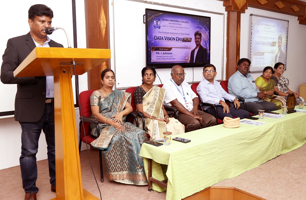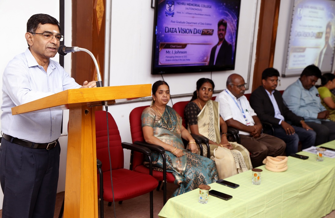 The Department of Data Science at Nehru Memorial College successfully organized “Data Vision Day 2K26” in the Seminar Hall at 10.00 a.m., providing students with an engaging platform to explore the latest advancements in Data Science, Artificial Intelligence, and Machine Learning.