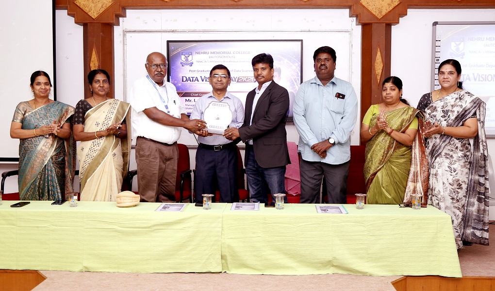 The Data Vision Day 2K26 – Data Science Project Exhibition was observed and appreciated by Mr.I.Johnson, Chief Guest, Mr. Suriya, College Committee Member, Dr.V.Priya, Associate Professor, Department of Computer Science &AI ML, Dr.D.Jayachitra, Director, MCA Department, Dr. P.Neelanarayanan, Principal Incharge of Nehru Memorial College and Dr. M. Meenakshisundaram, Coordinator, whose support played a crucial role in the success of the event.