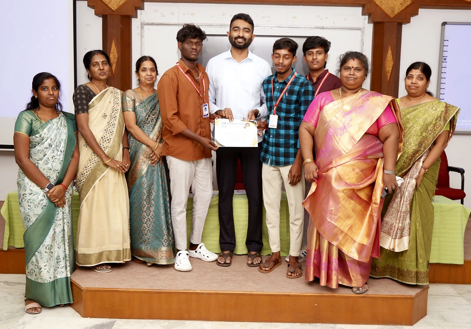 During the keynote address, the Chief Guest, Mr. I. Johnson, Managing Director and CEO of Shalom Info tech Pvt. Ltd., Trichy, appreciated the efforts of the students in developing innovative data science projects. He advised the students to explore job portal websites such as Naukri.com to understand industry requirements, job roles, and responsibilities. He also emphasized the importance of strengthening basic concept sand continuously upgrading technical skills to meet the demands of the IT industry.