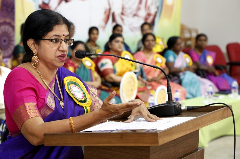 கல்லூரி தலைவர் அவர் உரையில் சிறப்பு விருந்தினர்களை அறிமுகப்படுத்தி ‘பெருமைமிக்க முன்னாள் மாணவர்’ விருதுபெற்ற மாணவிகளைப் பாராட்டிப் பேசினார். கல்லூரி செயலர் பெண்கள் முன்னேற்றத்திற்கும் அவர்கள் பெண்களுக்கான நீதி பெறவும் நாம் துணை நிற்கவேண்டும் என்றார். திருமதி, சித்ரா கணபதி அவர்கள் உரையில் எல்லாக் காலத்திலும் பெண் மற்றவர்களைப் பாதுகாப்பவளாக இருந்திருக்கிறாள். எல்லோரையும் பேணுபவளாக இருப்பதால் பெண் எனப்பட்டாள், நம் தமிழர் மரபில் சங்கங்காலம் சமநிலை சமுதாயமாக இருந்தது. இடைக்காலத்தில் தான் பெண் பின்னடைவைச் சந்தித்தாள். ஓவ்வொரு பெண்ணும் பழமைக்கும் புதுமைக்கும் பாலமாக இருக்கின்றாள். பெண்கள் முதலில் தங்களுக்குத் தாங்களே மரியாதைதரப் பழகவேண்டும். அனைவரையும் மதிக்கவேண்டும். எல்லாத் துறைகளில் பெண்களுக்கான வாய்ப்புகள் குவிந்து கிடக்கின்றன. வழிகாட்டுவதற்கும் பெண்களுக்கான முன்னோடிகள் மிகுந்துள்ளனர். இவற்றை அறிந்து பெண்கள் முன்னேறவேண்டும். தமிழ்த்தாய் நம்மைப் பெற்ற அன்னையைப் போல் அதனால் தமிழ்ப்பற்றை பெண்கள் தங்கள் குழந்தைகளுக்கு ஊட்டி வளர்க்கவேண்டும் என்றார். சுவn.வளர்மதி குமரேசன் அவர்கள் உரையில் இந்த விழாவில் விருதுபெறும் முன்னாள் சாதனை மாணவிகளைப் பார்த்து அதுபோன்று நாமும் உயர்ந்த இடத்திற்குச் செல்லவேண்டும் என்கிற உணர்வோடு நீங்கள் பயிலவேண்டும். அந்த நோக்கத்திற்காகத்தான் இது போன்ற விழாக்களை நிர்வாகத்தினர் நடத்துகின்றனர் என்றார்.