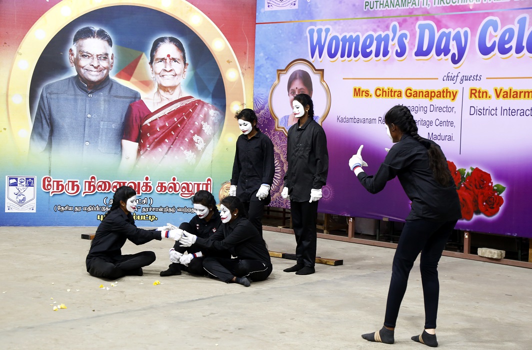 திருச்சி மாவட்டம் புத்தனாம்பட்டி நேரு நினைவுக் கல்லூரியில் மகளிர் தின விழா கல்லூரி வளாகத்தில் மூக்கப்பிள்ளை கலையரங்கத்தில் 11.03.2026 (புதன்கிழமை) காலை 10.30 மணிக்கு நடைபெற்றது.